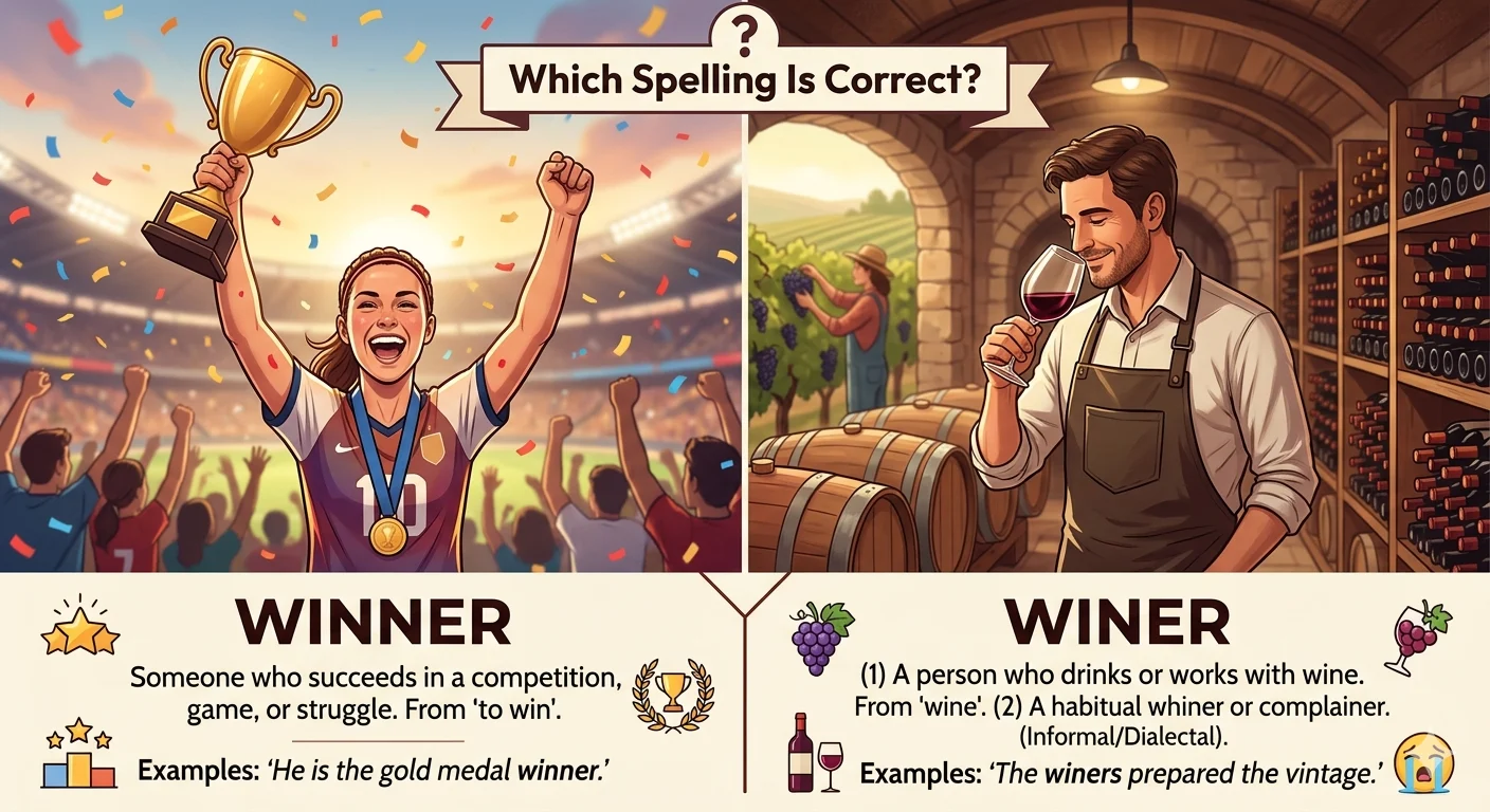 This is one of the most common spelling confusions in the English language. Every day, thousands of people search for “winner or winer meaning” because autocorrect flags one version, or because they simply want to make sure their writing is correct.